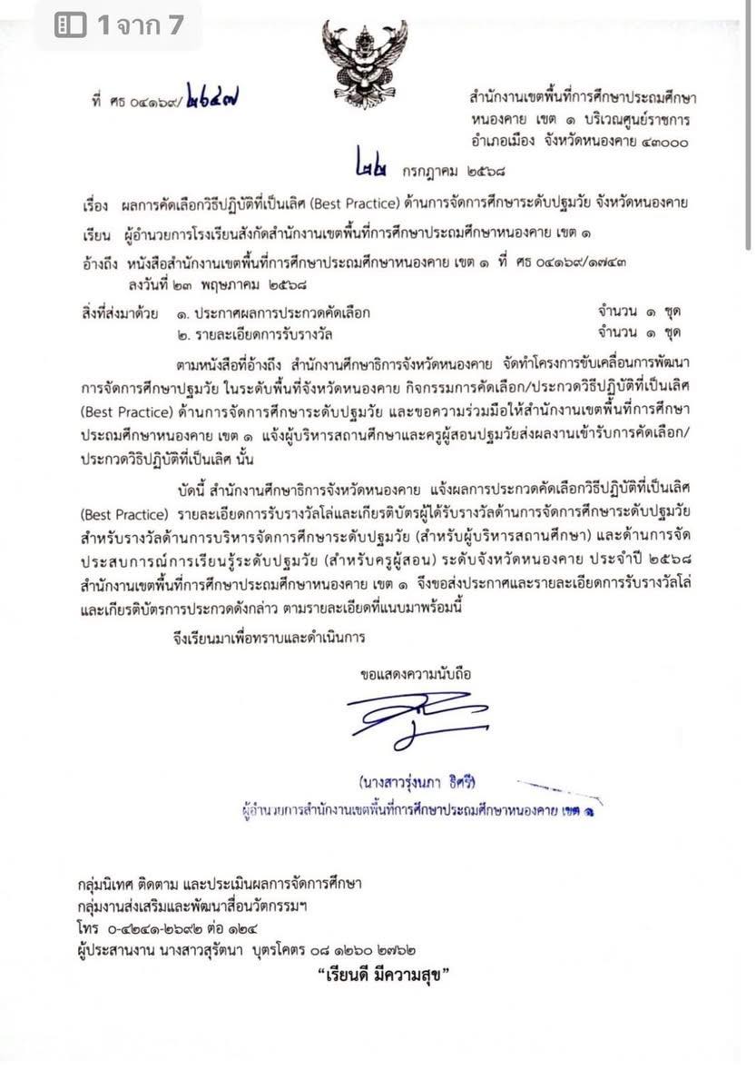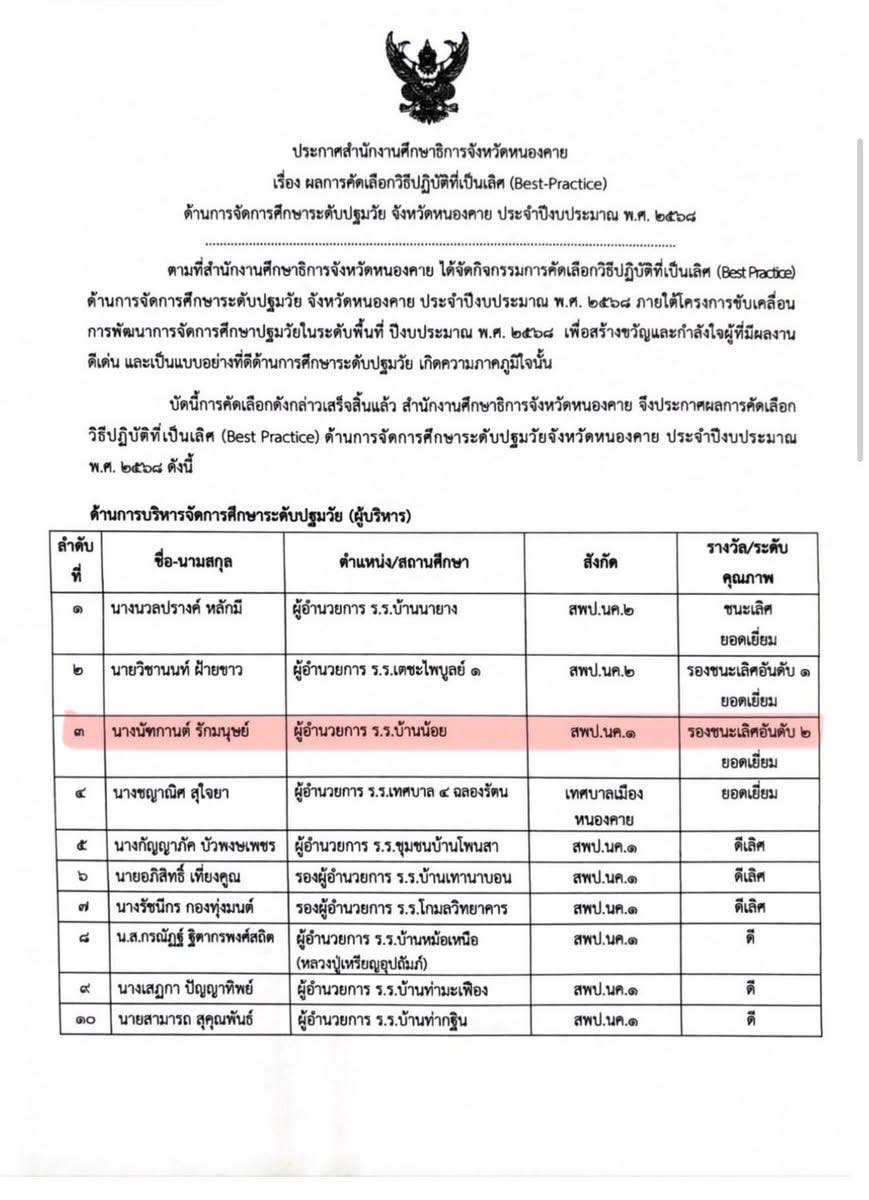 ผลการคัดเลือกวิธีปฏิบัติที่เป็นเลิศ